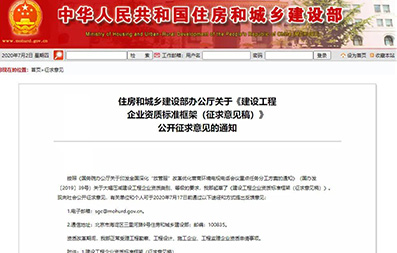按照《國務(wù)院辦公廳關(guān)于印發(fā)全國深化“放管服”改革優(yōu)化營商環(huán)境電視電話會議重點任務(wù)分工方案的通知》(國辦發(fā)〔2019〕39號)關(guān)于大幅壓減建設(shè)工程企業(yè)資質(zhì)類別、等級的要求,我部起草了《建設(shè)工程企業(yè)資質(zhì)標準框架(征求意見稿)》。現(xiàn)向社會公開征求...