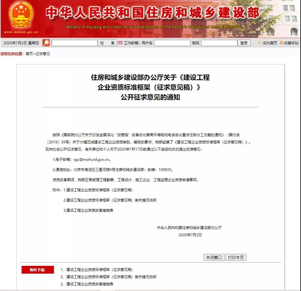 按照《國務(wù)院辦公廳關(guān)于印發(fā)全國深化“放管服”改革優(yōu)化營商環(huán)境電視電話會議重點任務(wù)分工方案的通知》(國辦發(fā)〔2019〕39號)關(guān)于大幅壓減建設(shè)工程企業(yè)資質(zhì)類別、等級的要求,我部起草了《建設(shè)工程企業(yè)資質(zhì)標(biāo)準(zhǔn)框架(征求意見稿)》。現(xiàn)向社會公開征求意見,有關(guān)單位和個人可于2020年7月17日前通過以下途徑和方式提出反饋意見: