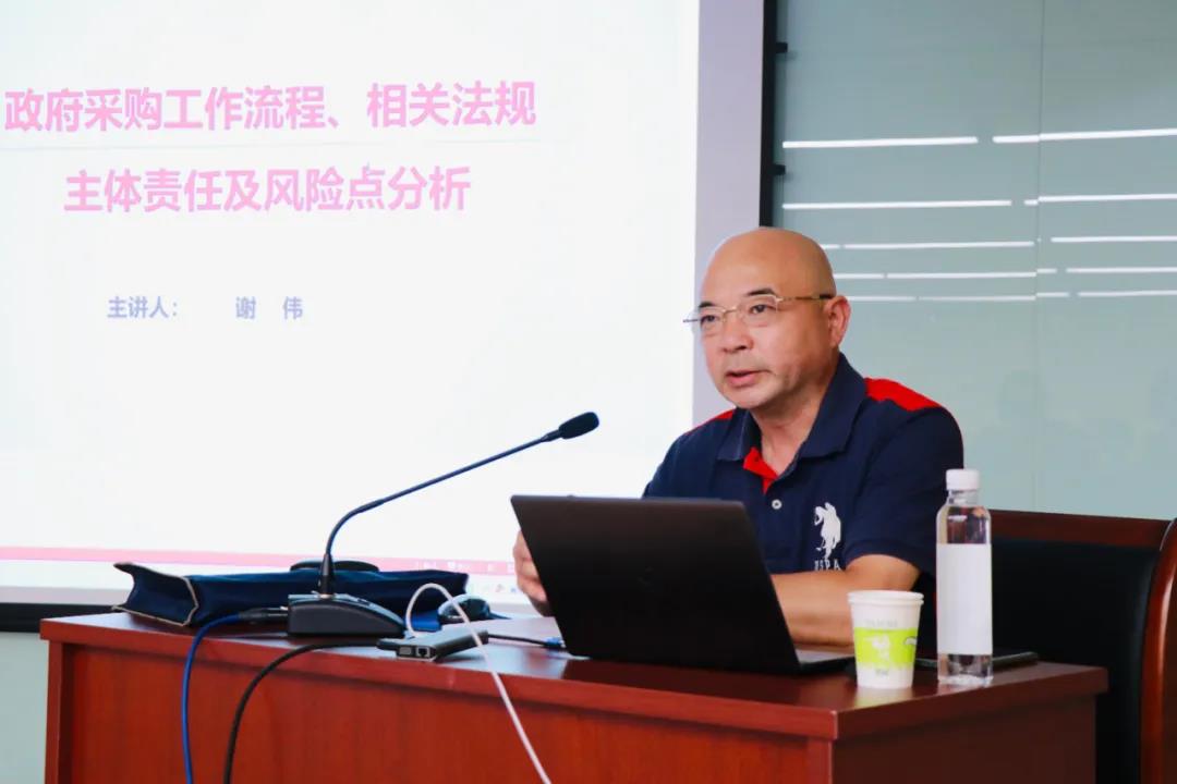 蘇州市行政審批局公共資源交易管理處處長、蘇州市安防協(xié)會(huì)監(jiān)事謝偉圍繞“政府采購工作流程、相關(guān)法規(guī)主體責(zé)任及風(fēng)險(xiǎn)點(diǎn)分析”展開授課。